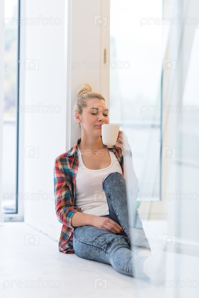 Девушка наслаждается чашечкой кофе