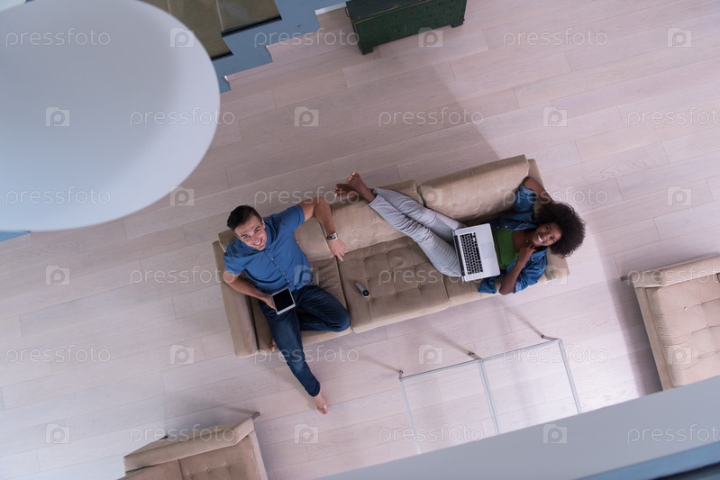 Пара в гостиной на диване