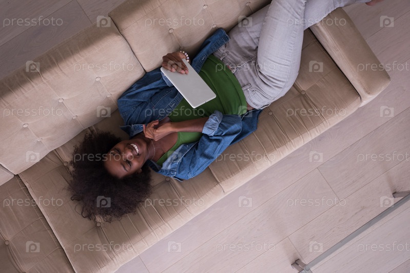 Счастливая девушка на диване