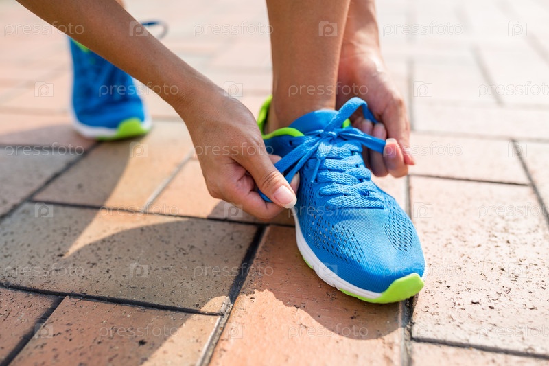 Девушка завязывает шнурки