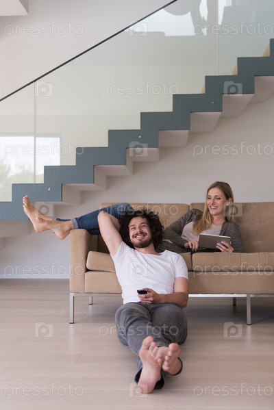 Молодая пара отдыхает в гостиной