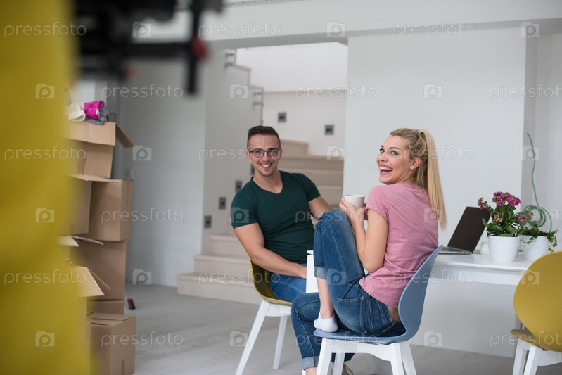 Молодая пара в новом доме