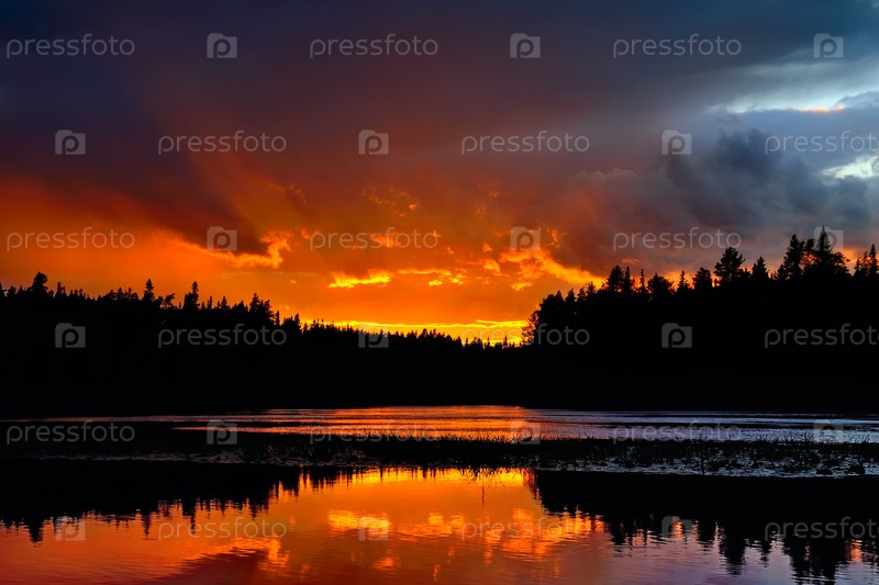 Драматический закат на реке Чирко-Кемь. Карелия, Россия