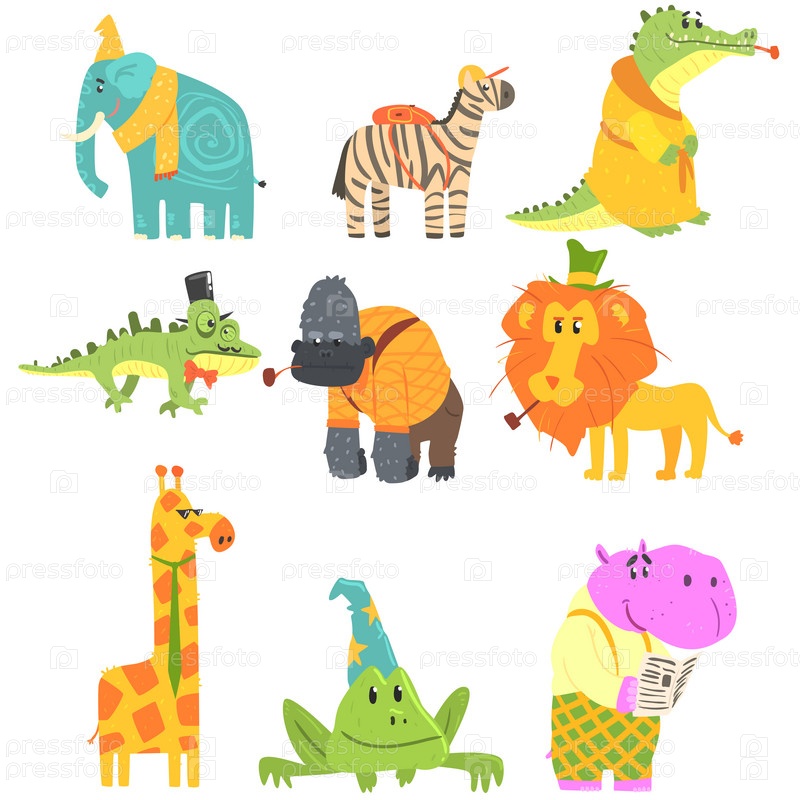 Африканские животные с человеческими атрибутами и набором одежды