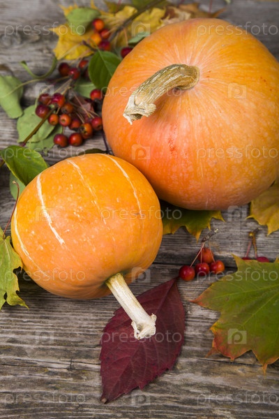Тыквы и осенние листья