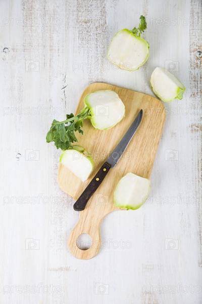 Кольраби на разделочной доске