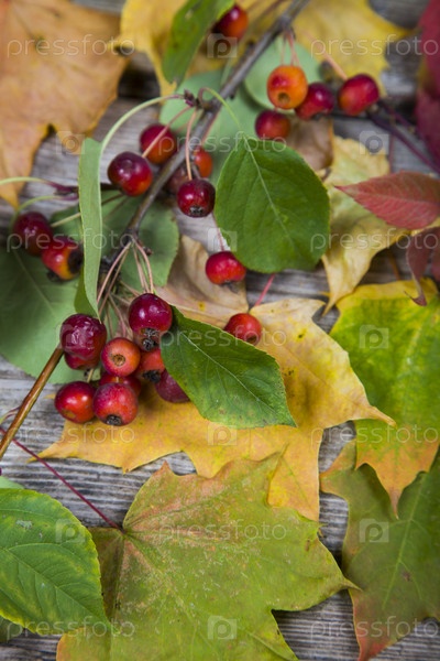Осенние листья клена и яблоки
