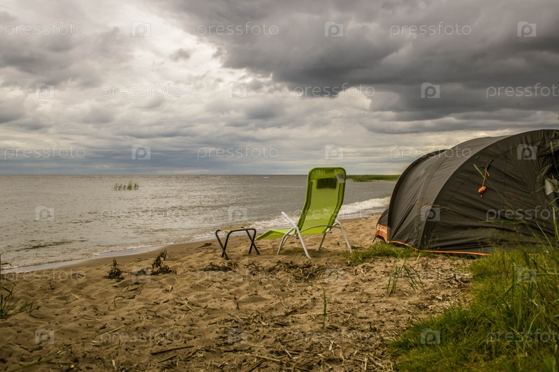 Палатка на берегу озера