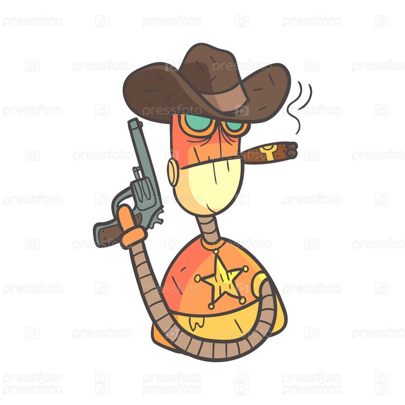 Шериф оранжевый робот в ковбойской шляпе с пистолетом
