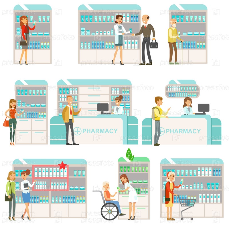 Улыбающиеся люди в аптеке