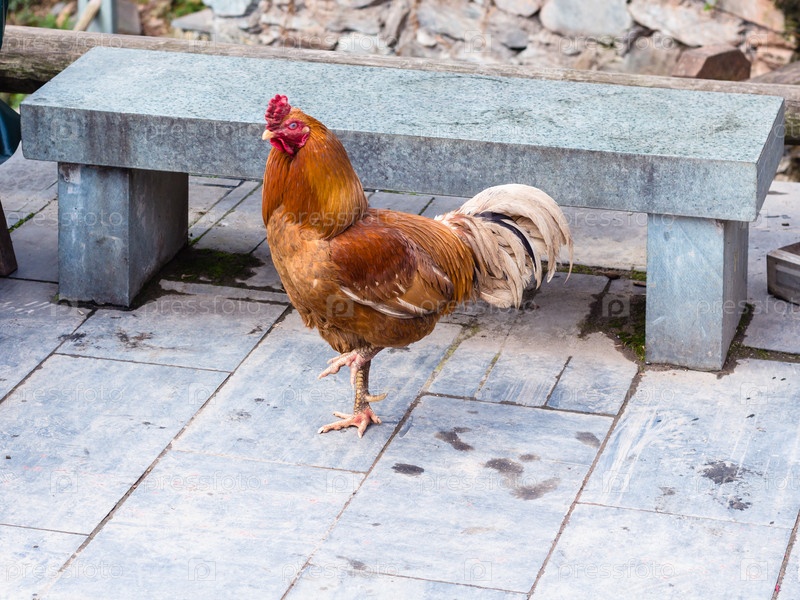 Красный цыпленок на улице в Чэньяне