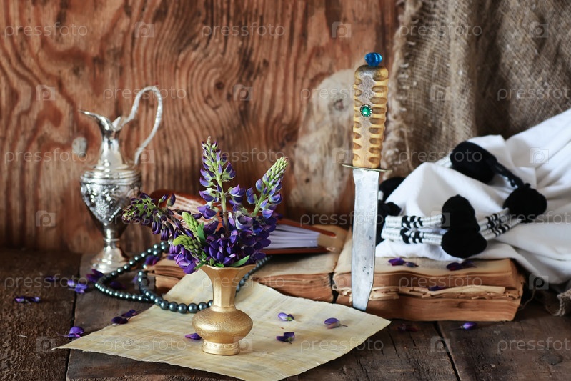 Арабская книга, цветок и нож