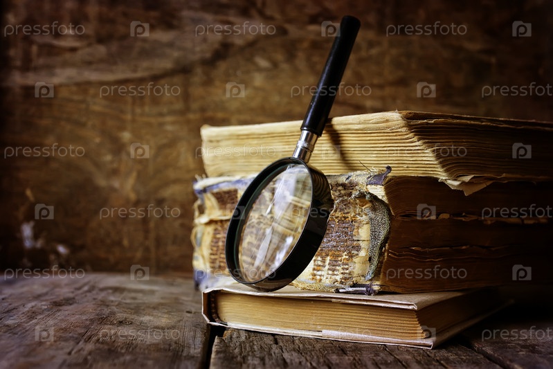 Увеличительное стекло и старые книги