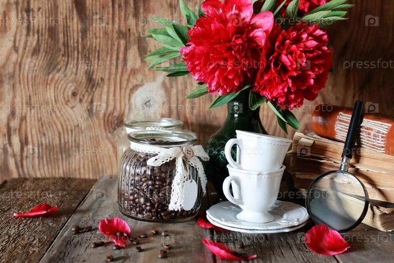 Кофе, чашки и цветы