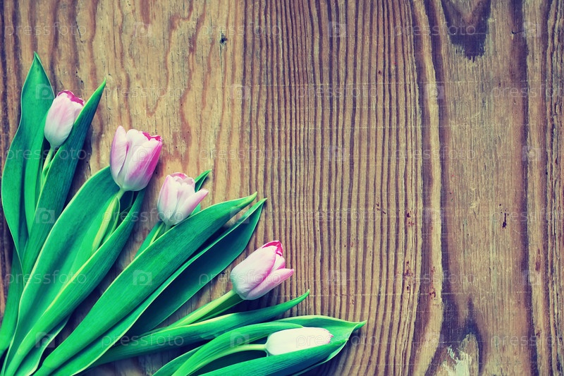 Тюльпаны на деревянном фоне