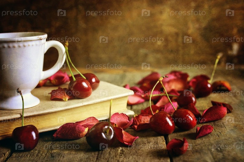Вишня и лепестки роз