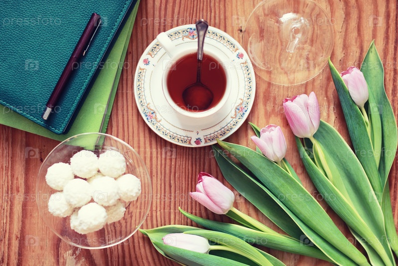 Чай и кокосовые конфеты