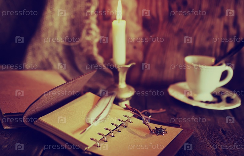 Ежедневник, кофе и свечка