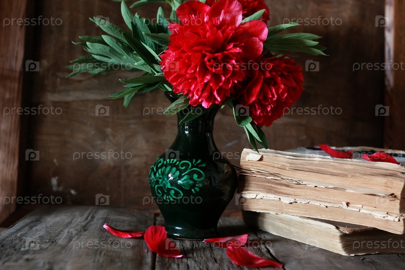 Старые книги и цветы