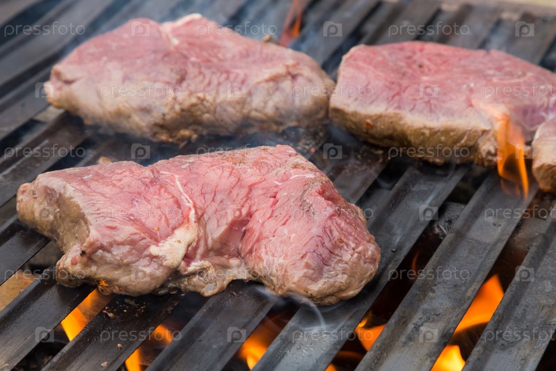 Сырые говяжьи стейки на гриле
