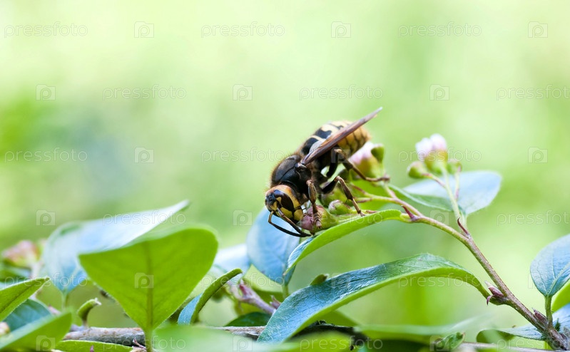Оса собирает нектар с цветущих кустарников