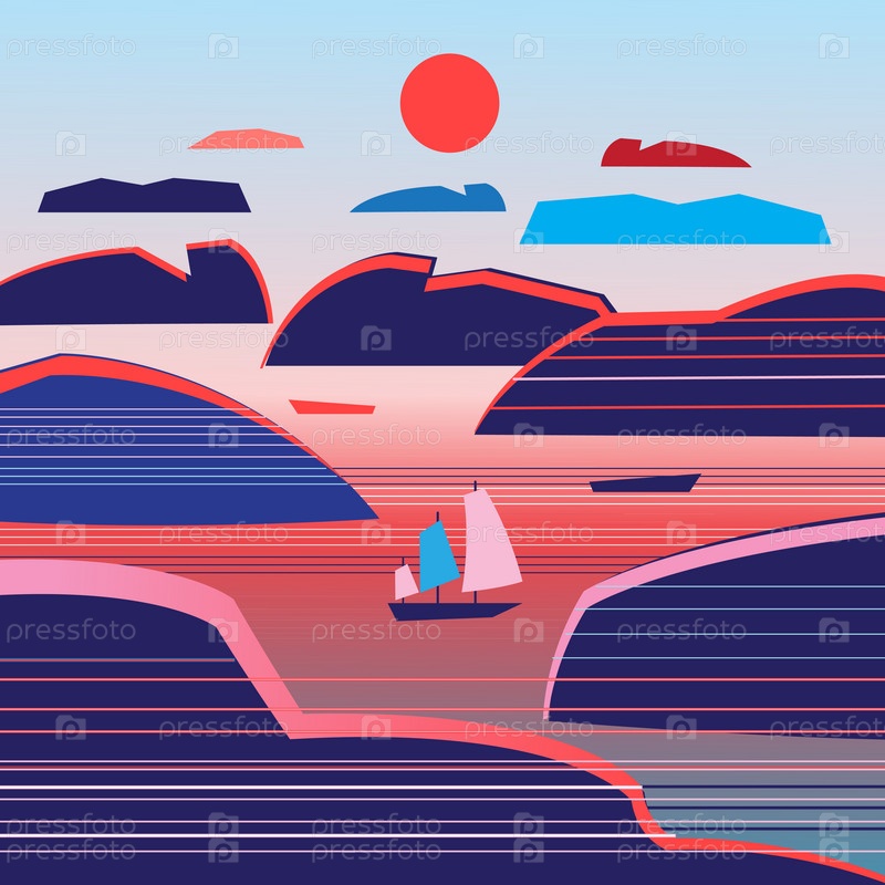 Морской пейзаж с островами и кораблем