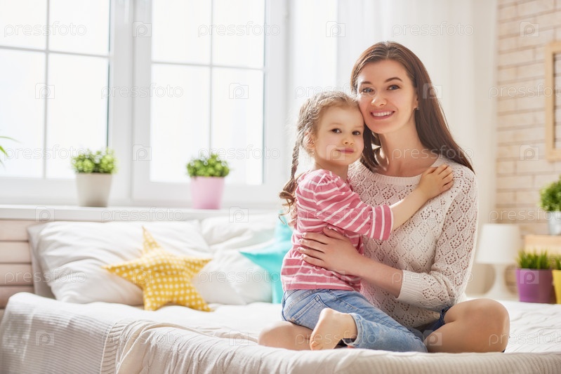 Мать и дочь играют дома
