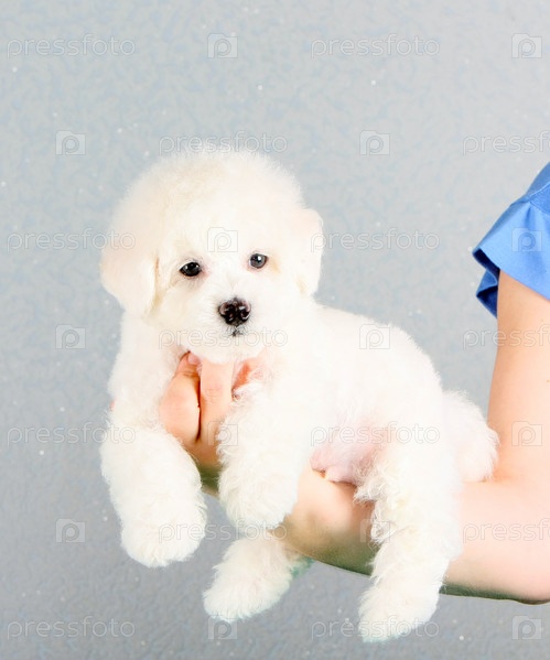 Милый белый щенок породы бишон фризе