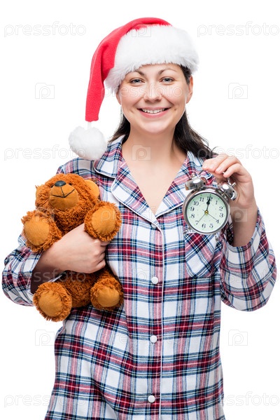 Портрет красивой женщины в пижаме в канун Нового года