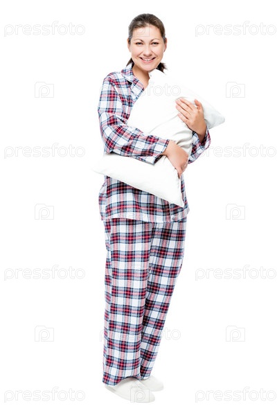 Девушка с подушкой в пижаме и тапочках
