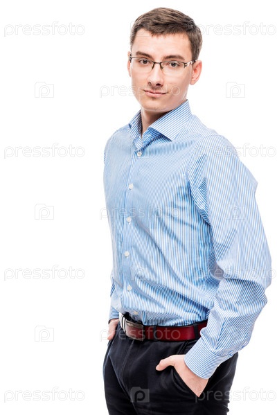 25-летний предприниматель в синей рубашке