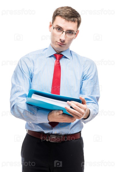 Портрет главного бухгалтера с папкой на белом фоне