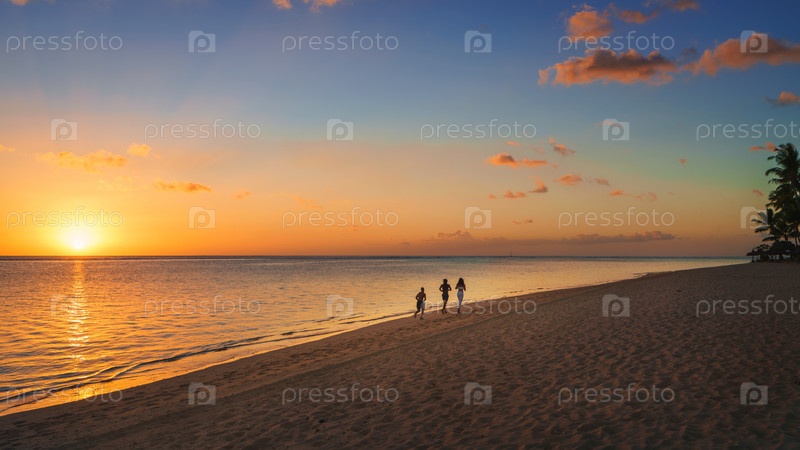 Бегуны на пляже на закате