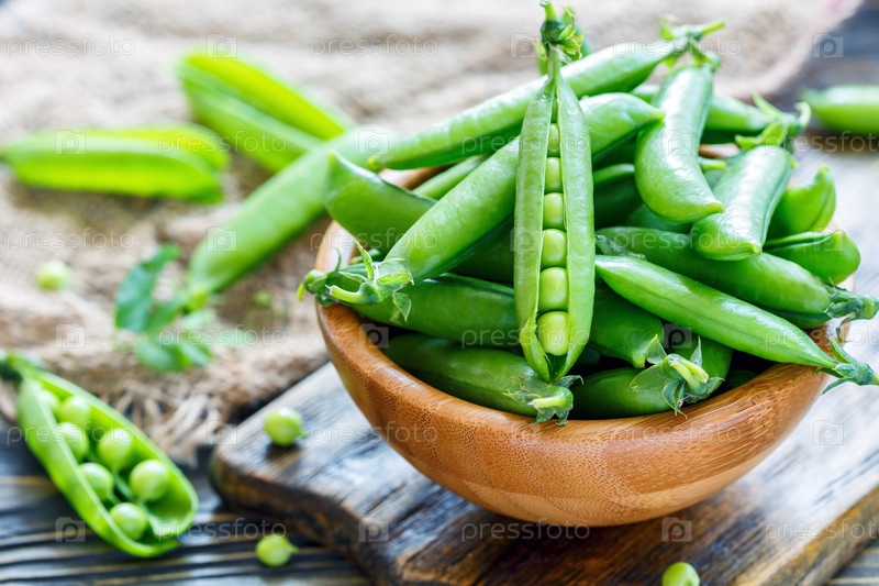Зеленый горошек в деревянной миске