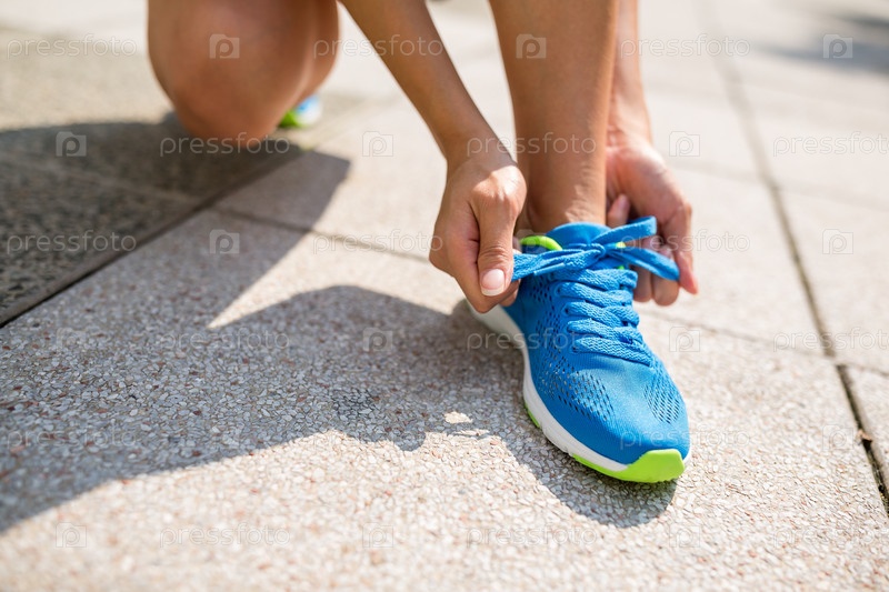 Женщина завязывает шнурки