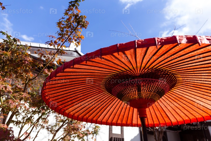 Красный зонт и красные листья клена