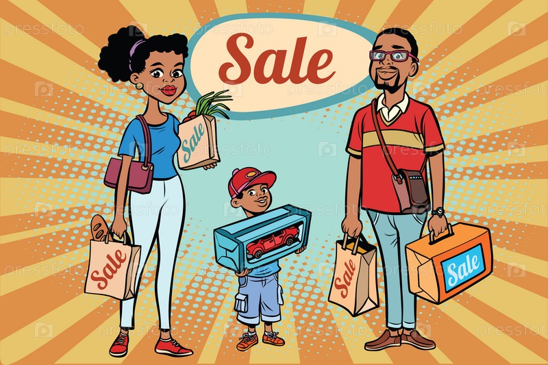 Африканская семья с покупками на распродаже