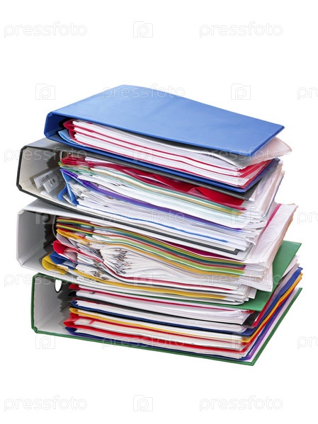 Стопка папок с документами на белом фоне