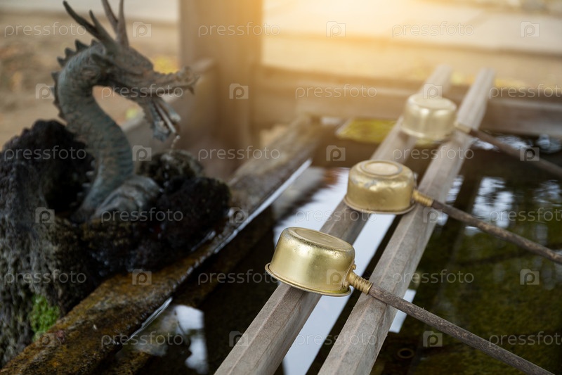 Бамбуковый фонтан в японском храме