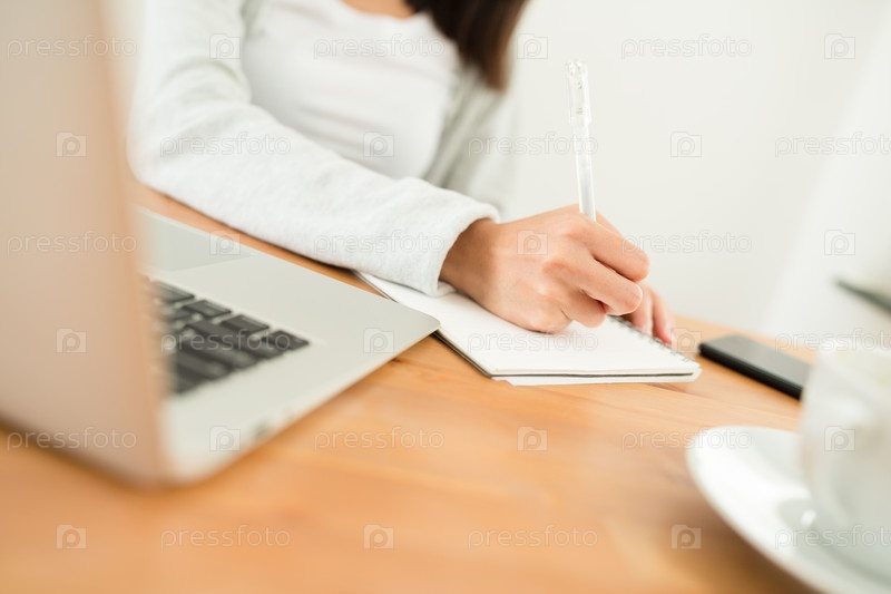 Женщина пишет в записную книжку