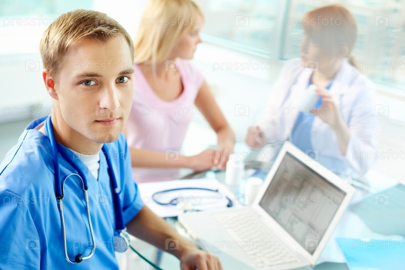 Портрет молодого мужчины-врача в кабинете