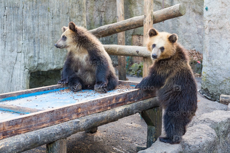 Маленький бурый медведь в зоопарке