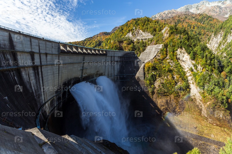 Плотина Куробе и радуга в Японии