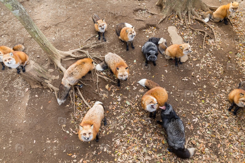 Лисы в ожидании еды