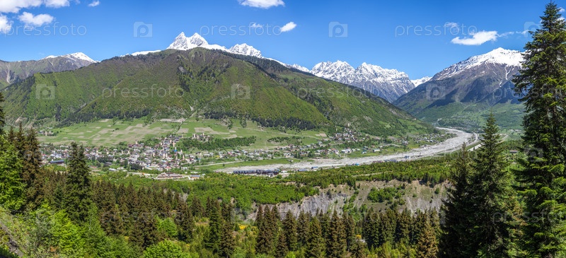 Гора Ушба и город Местии, Грузия
