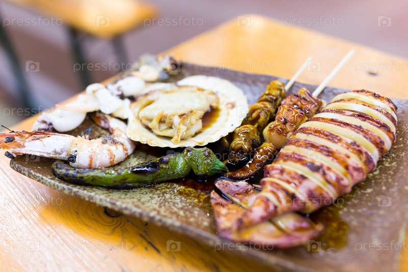 Жареные морепродукты в ресторане