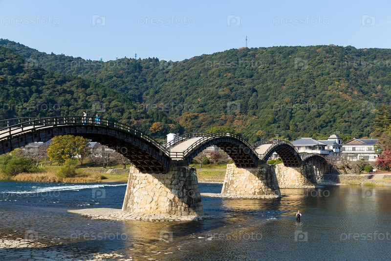 Арочный пешеходный мост кинтай в Японии