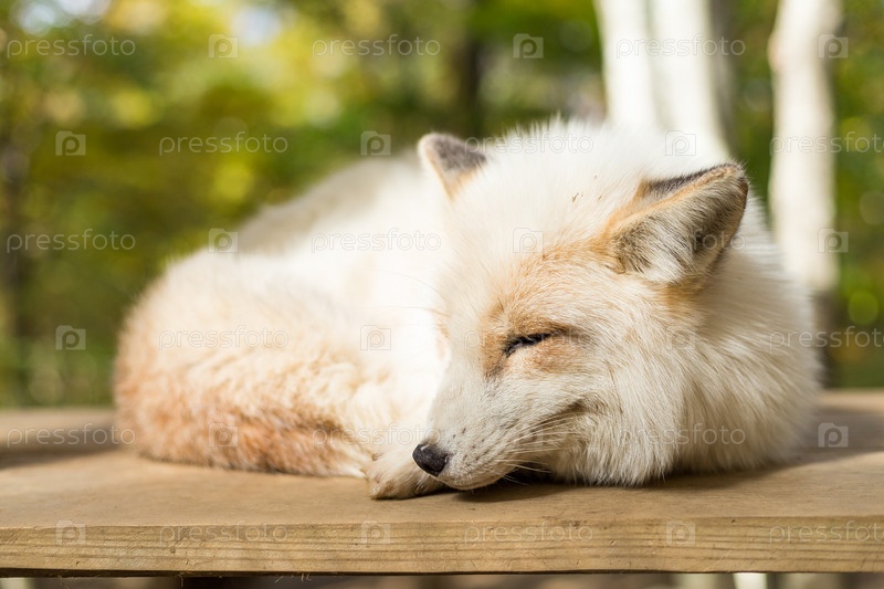 Белая спящая лиса на открытом воздухе