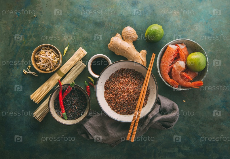 Различные виды риса и сушеная азиатская лапша