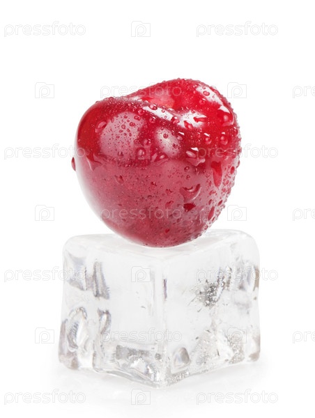 Ягода вишни на кусочке льда